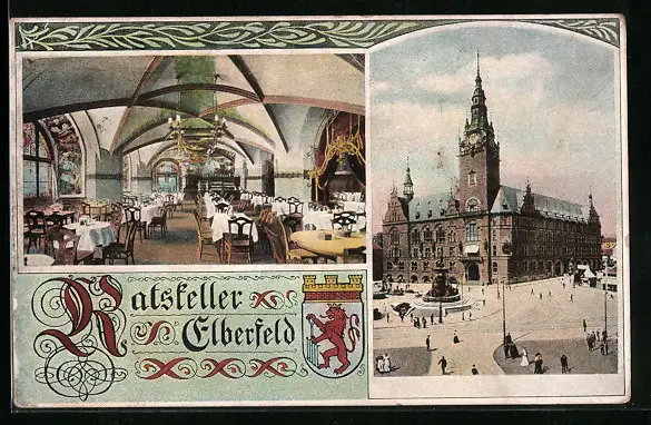 AK Elberfeld, Gasthaus Ratskeller im Rathaus, Innenansicht