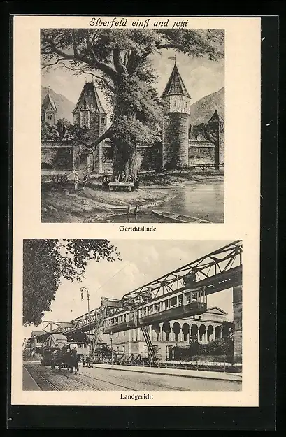 AK Elberfeld, Landgericht mit Schwebebahn, Gerichtslinde
