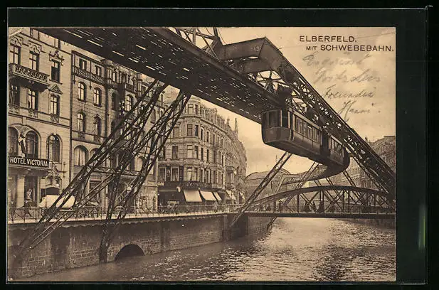 AK Elberfeld, Ortsansicht mit Schwebebahn