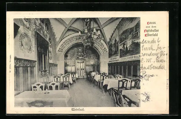 AK Elberfeld, Ratskeller, Blick in den Weinsaal