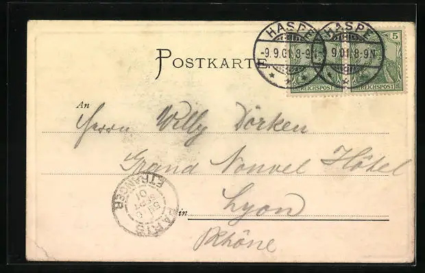 alte Ansichtskarte, gelaufen 1901, Eckknick re. unten, guter Zustand