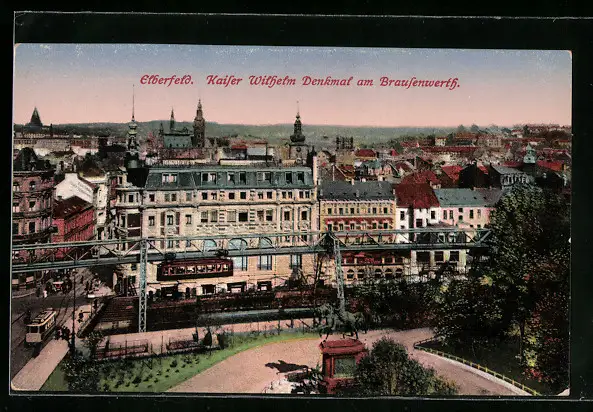 AK Elberfeld, Schwebebahn, Kaiser Wilhelm Denkma am Brausenwerth
