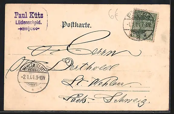 alte Ansichtskarte, gelaufen 1901, guter Zustand