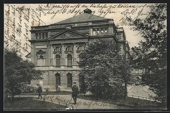 AK Elberfeld, Stadttheater und Strassenpartie mit Strassenbahn