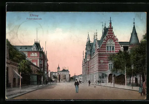 AK Elbing / Elblag, Personen auf der Friedrichstrasse