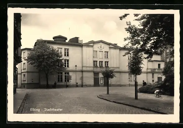 AK Elbing / Elblag, Strassenpartie am Stadttheater