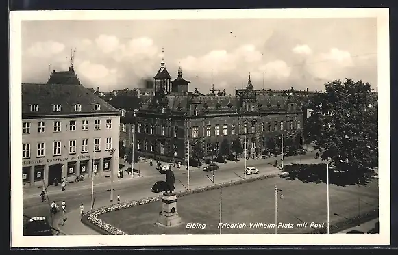 AK Elbing, Friedrich-Wilhelm-Platz mit Post