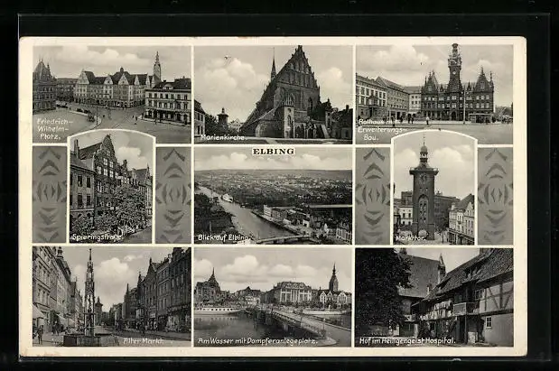 AK Elbing, Markttor, Marienkirche, Spieringstrasse