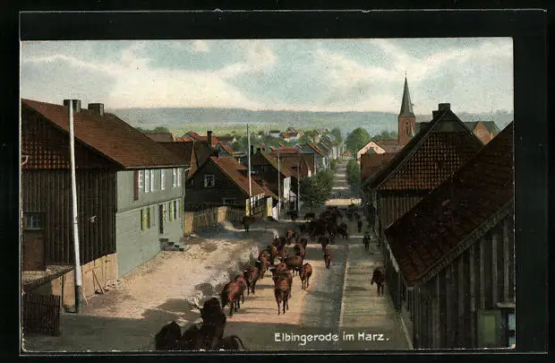 AK Elbingerode im Harz, Strassenpartie mit Rinderherde