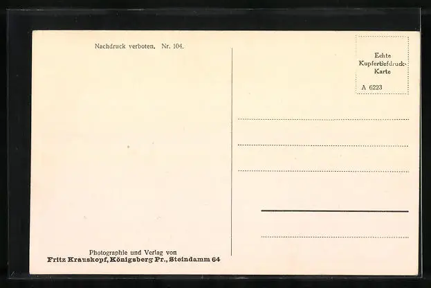 Personenbezogene Daten auf der Rückseite der Karte wurden durch blauen Textmarker unkenntlich gemacht. Die blauen Stellen sind auf die Vorderseite durchgeweicht und wirken sich negativ auf das Postkartenfoto aus