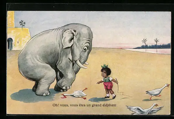 AK Elefant ist auf eine Gans getreten
