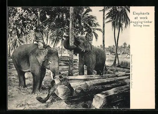 AK Elephants at work dragging timber, felling trees, Arbeits-Elefanten