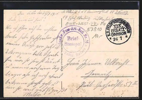 gelaufen 1915, Stempelspur, guter Zustand
