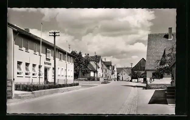 AK Ellenberg b. Aalen, Strassenpartie mit Rathaus
