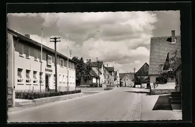 AK Ellenberg b. Aalen, Strassenpartie mit Rathaus