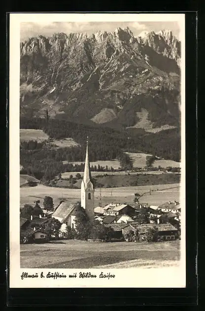 AK Ellmau, Ortsansicht mit Wildem Kaiser