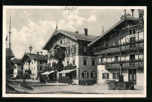 AK Ellmau, Strassenpartie mit Säulenstandbild