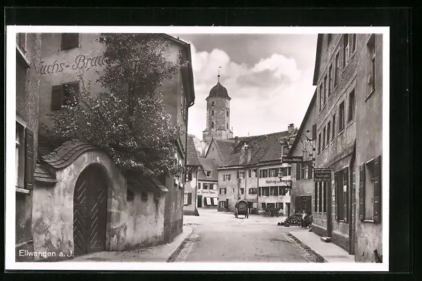 AK Ellwangen a. J., Strassenpartie mit Gasthaus zum Waldhorn