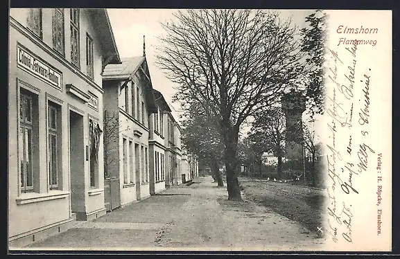 AK Elmshorn, Colonia- u. Fettwarenhandlung im Flammweg