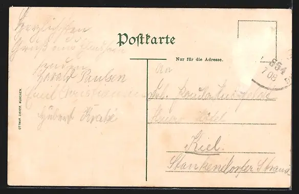 alte Ansichtskarte, gelaufen 1908, Briefmarke entfernt, rückseitig Oberflächenschaden, guter Zustand