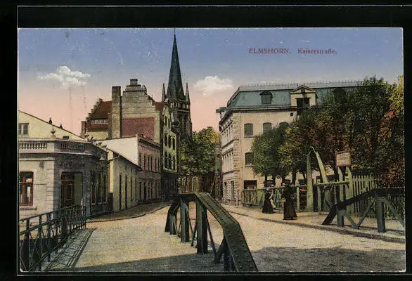 AK Elmshorn, Kaiserstrasse mit Brücke und Kirche