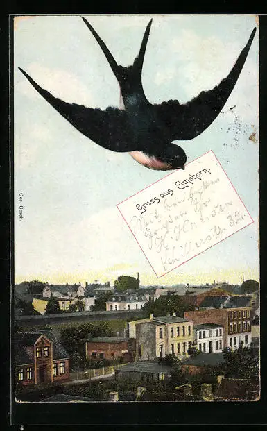 AK Elmshorn, Ortspartie, Schwalbe bringt einen Brief