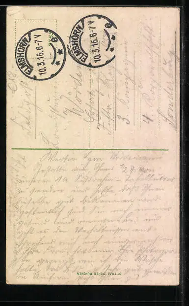 alte Ansichtskarte, gelaufen 1916 als Feldpost, Bugspur oben rechts, guter Zustand