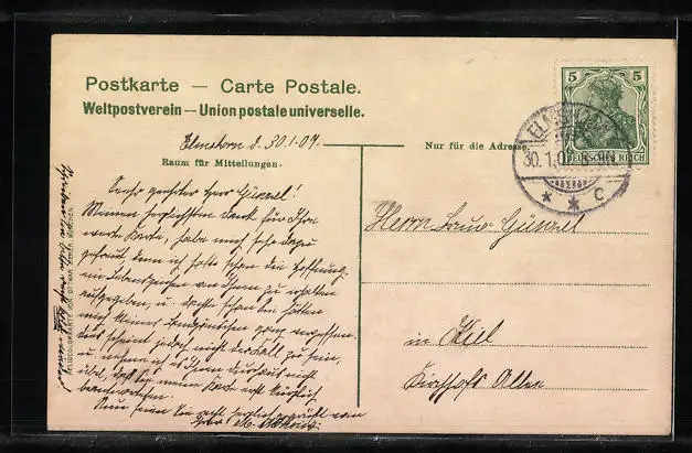 alte Ansichtskarte, gelaufen 1907, guter Zustand
