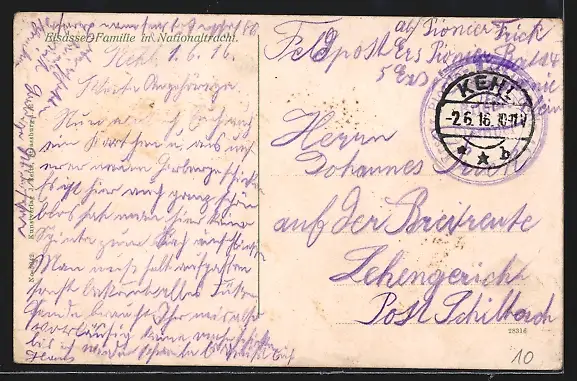 AK Elsässer Familie in Nationaltracht