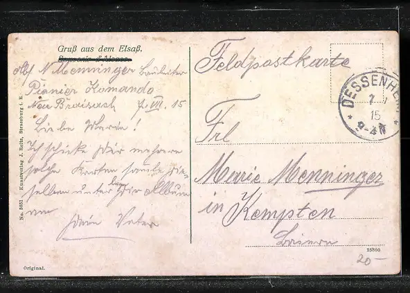 alte Ansichtskarte, gelaufen 1915 als Feldpost, Eckknick re. unten, guter Zustand