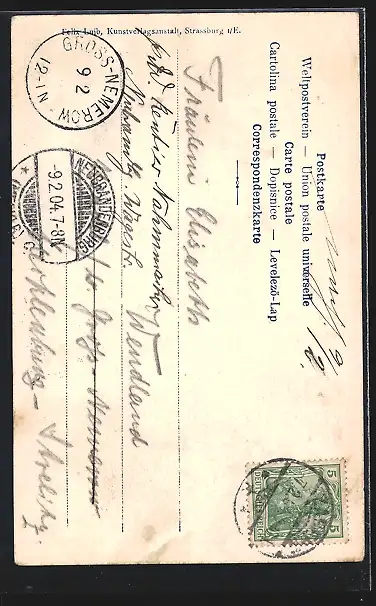 alte Ansichtskarte, gelaufen 1904, Eckknick unten li., guter Zustand