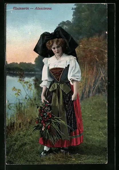 AK Elsässerin in Tracht, Alsacienne, elsass-lothringische Tracht