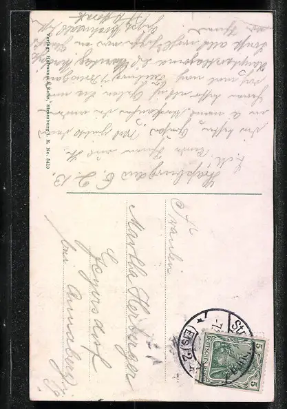 alte Ansichtskarte, gelaufen 1913, Eckknick li. oben, guter Zustand