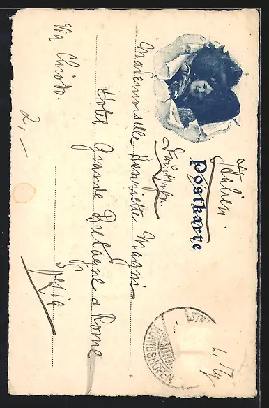 alte Ansichtskarte, gelaufen, Briefmarke entfernt, guter Zustand