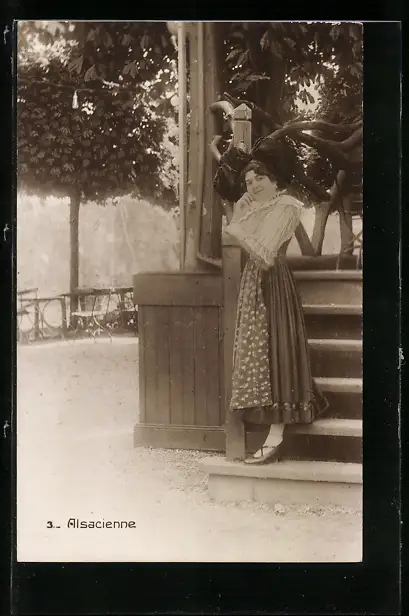 AK Elsässerin in Tracht an einem Brunnen