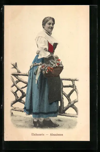 AK Elsässerin in Tracht mit Korb