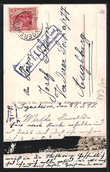 alte Ansichtskarte, gelaufen 1918, rückseitig Klebe- und Papierreste, rückseitig Oberflächenschaden, guter Zustand