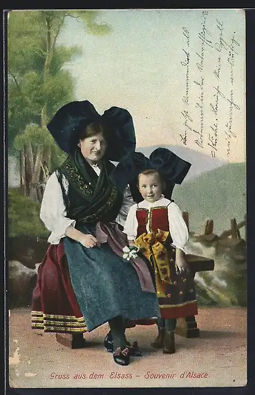AK Elsässerin mit Kind in Trachten