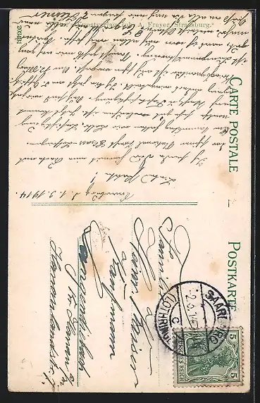 gelaufen 1914, Abriebspur unten links, guter Zustand