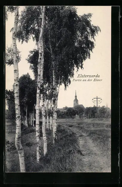 AK Elsterwerda, Partie an der Elster mit Kirche