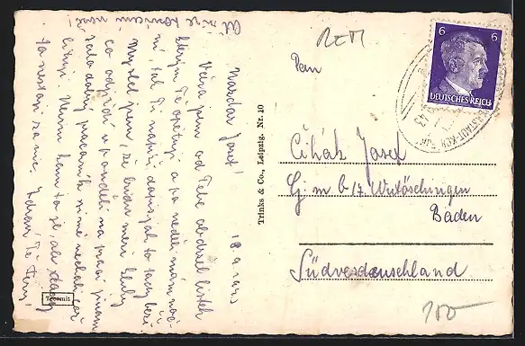 alte Ansichtskarte, gelaufen, rückseitig Oberflächenschaden, guter Zustand