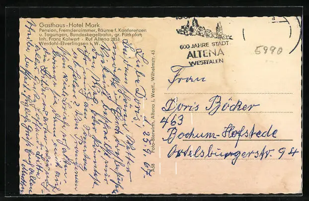 Weitere Ansichtskarten zur Postleitzahl 58791