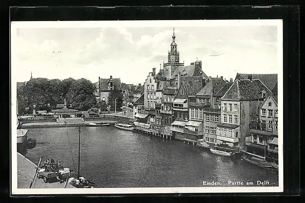 AK Emden / Ostfr., Delftpartie mit Konditorei