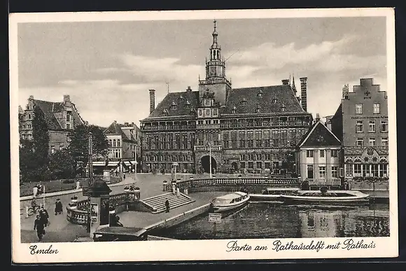 AK Emden / Ostfr., Rathausdelft mit Rathaus