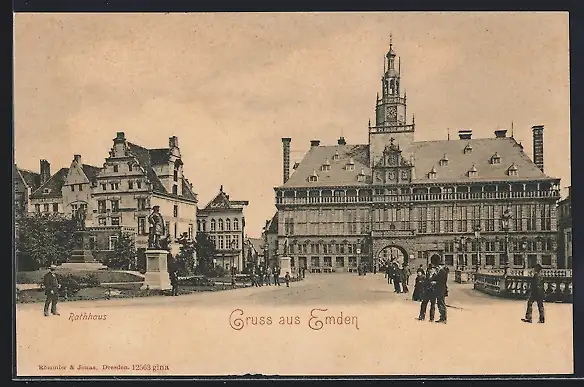 AK Emden, Rathaus mit Passanten