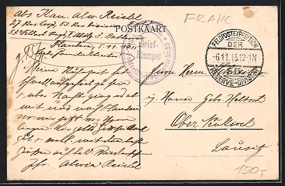 alte Ansichtskarte, gelaufen 1915, Abriebspur unten mittig, guter Zustand