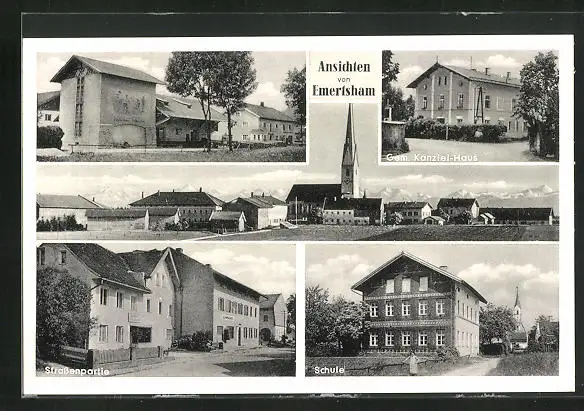 AK Emertsham, Strassenpartie, Schule, Totalansicht mit Kirche