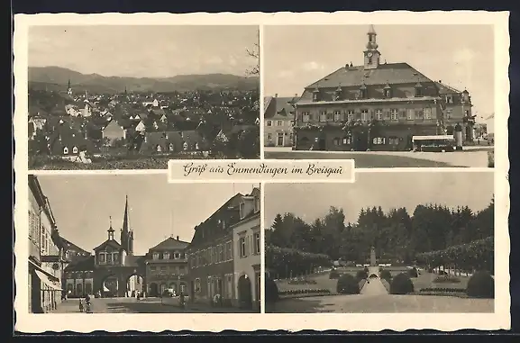AK Emmendingen, Ortsansicht & drei Partien im Ort