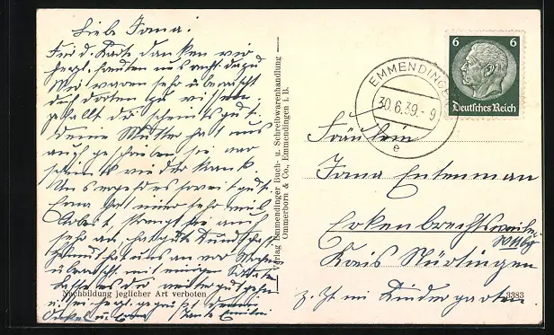alte Ansichtskarte, gelaufen 1939, guter Zustand