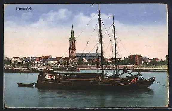 AK Emmerich, Ortsansicht mit Segelboot im Vordergrund